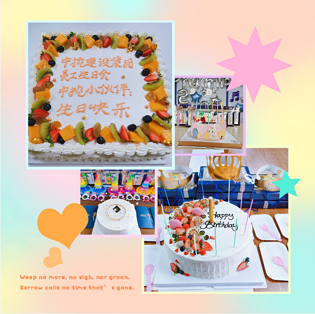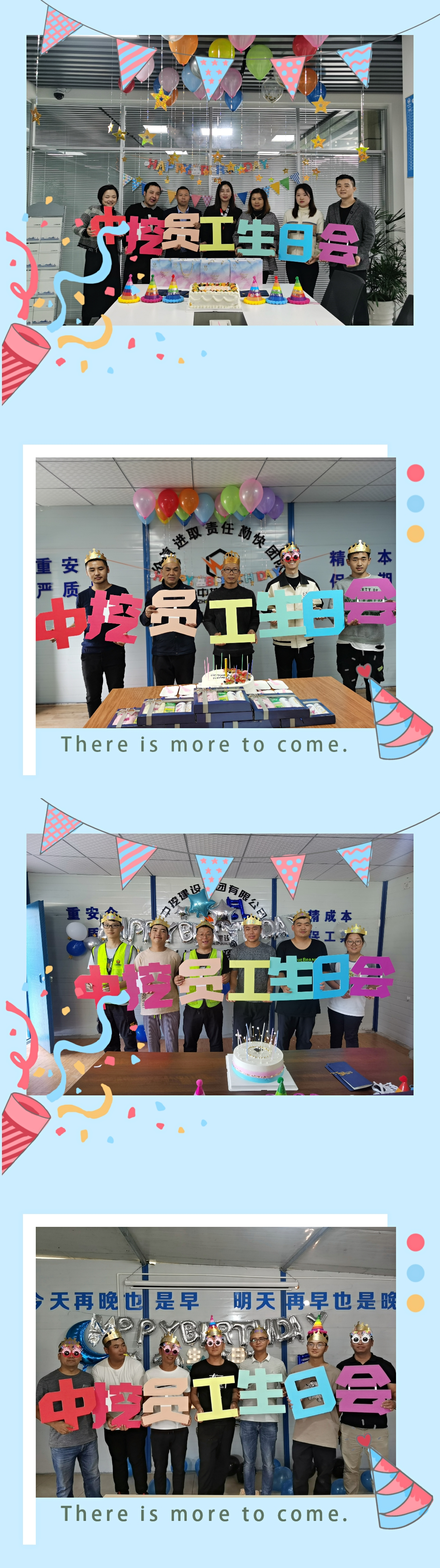 以生日之名镌刻美好时光┃感恩相伴让我们共鉴彼此成长!发表时间:2021-12-02 11:29 中挖同仁,生日快乐,一个人的生日是自得其乐,两个人的生日是温馨甜蜜,一群人的生日是意义非凡,中挖与你一起成长,我们一同创造美好。 为增强团队凝聚力,加强对员工的人文关怀,推动公司企业文化建设,形成良好的团队向心力和凝聚力。中挖建设集团人事部致力于关注每一位中挖人的成长,在每个月到公司的各个项目,为当月过生日的员工精细准备生日会活动,陪伴员工成长,让每一位员工切实感受到中挖大家庭的温暖,增强员工归属感!我们的到来,只为告诉中挖的伙伴们,奋斗的时光里,因为有我们的陪伴,你不再孤单!